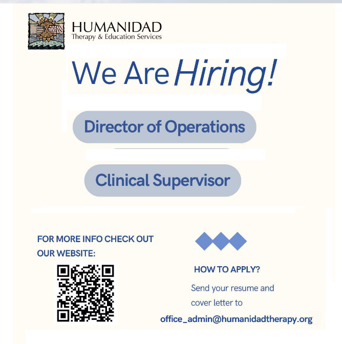 Noemi Degante as our new Co-Clinical Director at Humanidad. Noemi has been working with Humanidad for many years, bringing a wealth of clinical knowledge, experience, and a strong commitment to culturally responsive care. Her leadership, dedication, and deep understanding of our community make her an incredible asset to our organization. We are truly honored to have her step into this role and look forward to the continued impact of her guidance and expertise!